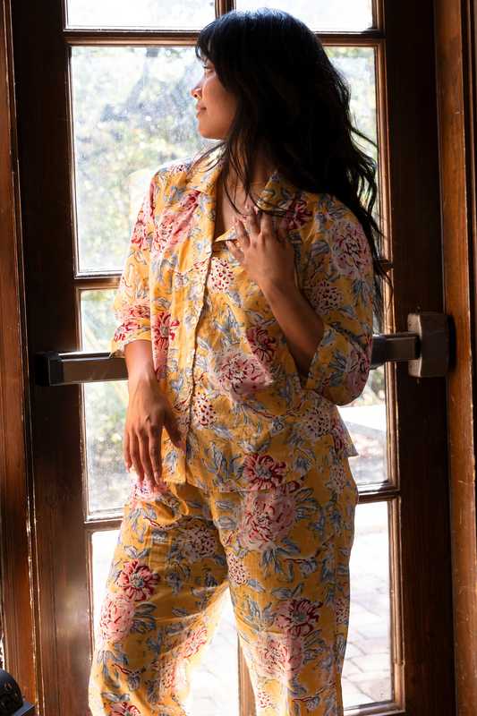 Jyoti PJ set With Pants - Printed Cotton Pajama Set with Long Pants for Women