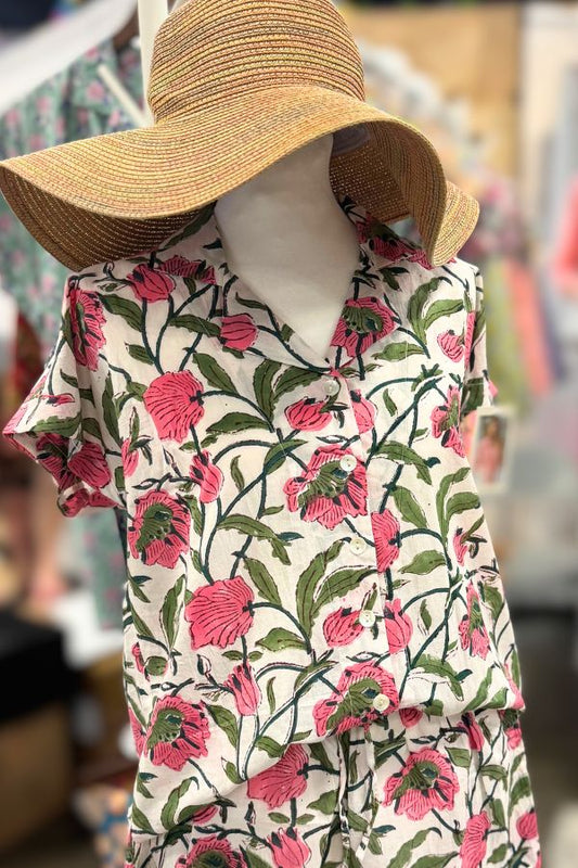 Jyoti Shirt - Women's Cap Sleeve Cotton Pajama Top
