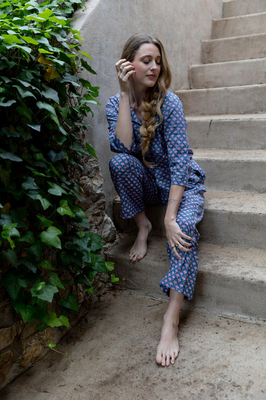 Deborah PJ set with Pants - Printed Cotton Pajama set with Long Pants for women