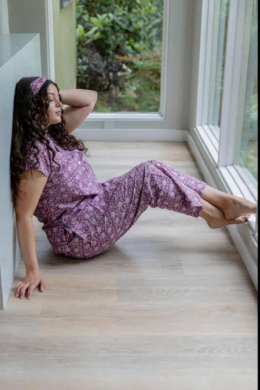 Jyoti Printed Cotton Pajama Set for Women – Button-Down Top & Long Pants