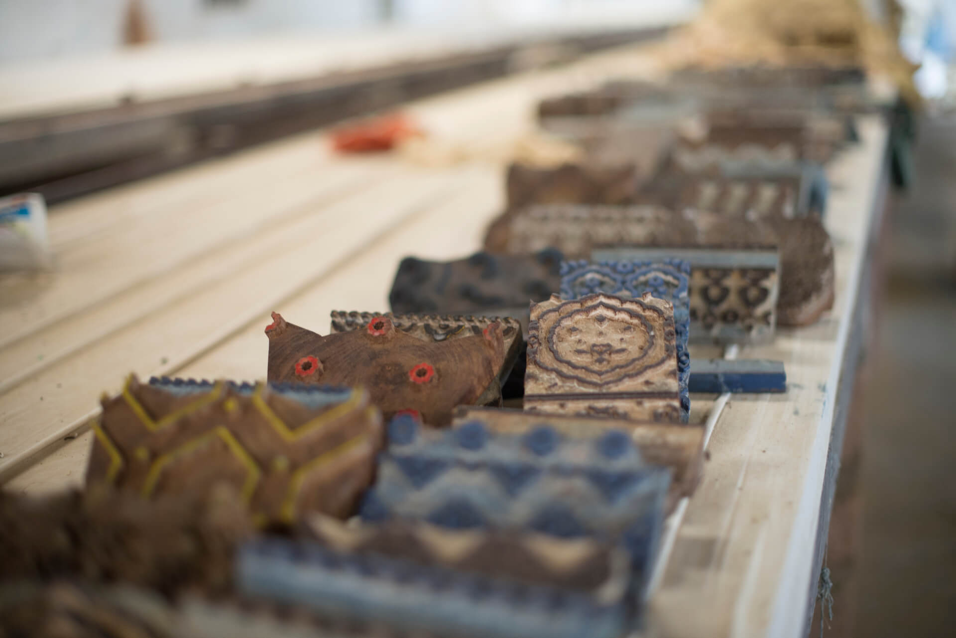 Once carved, these wooden stamps are dipped in dyes and pressed onto fabric, leaving behind stunning impressions. The stamps are placed in specific patterns to create beautiful designs. The precision required for these blocks to fit seamlessly together is truly awe-inspiring. The block patterns are inspired by nature and local flora and fauna of the region.